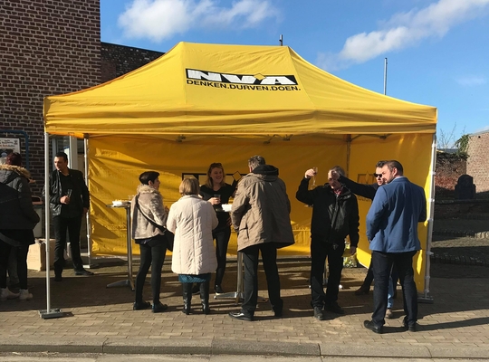 Zondag 11 maart 2018 organiseerde N-VA Hoegaarden voor de vijfde keer een Pop-Up Café. Deze keer stonden we terug in Outgaarden. We hadden allemaal geluk met het weer. De zon scheen zalig en lokte enkele nieuwsgierigen naar ons gele tentje.
